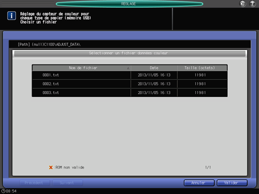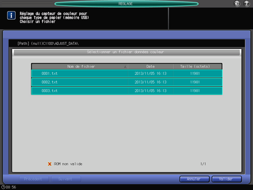Appuyez sur [Valider] sur l'écran [Sélectionner un fichier données couleur].