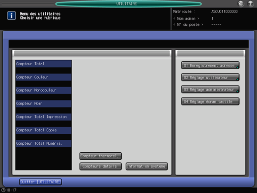 Appuyez sur le bouton Utilitaire/Compteur du panneau de contrôle pour afficher l'écran [UTILITAIRE].