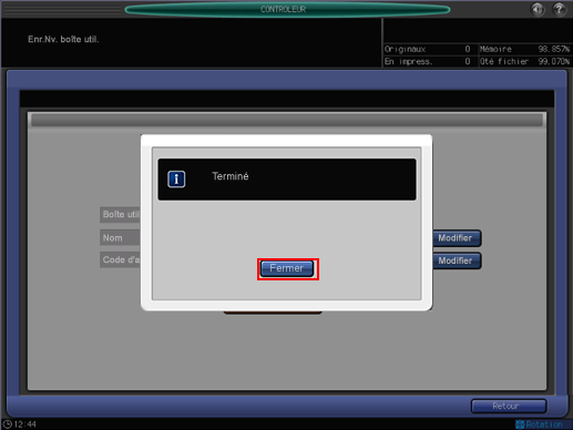 Appuyez sur [Retour] pour revenir à l'écran [Enr.Nv. boîte util.].