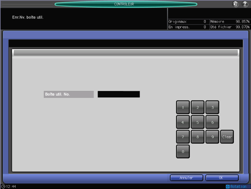 Entrez un numéro de boîte utilisateur et appuyez sur [OK].