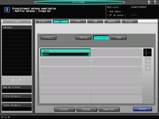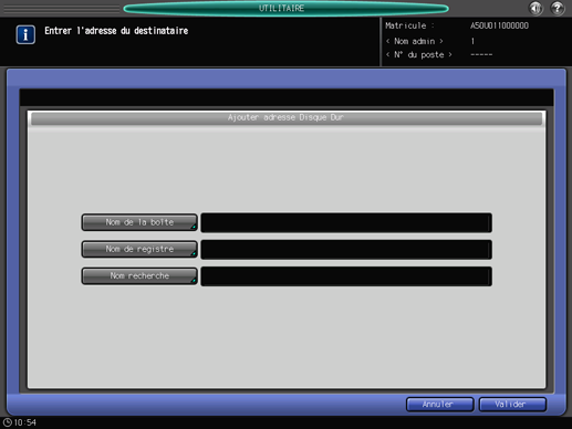 Entrez les informations d'une destination sur l'écran [Ajouter adresse Disque Dur].