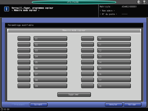 Pour éviter des suppressions accidentelles, vous pouvez verrouiller et déverrouiller la mémoire mode copieur. Avec cette fonction, vous pouvez également supprimer la mémoire mode copieur inutile.