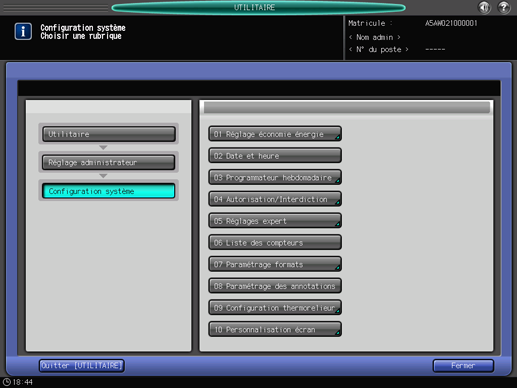 Appuyez sur l'onglet [Configuration système] de l'écran [Menu fonctions administrateur] et appuyez sur [Liste des compteurs].