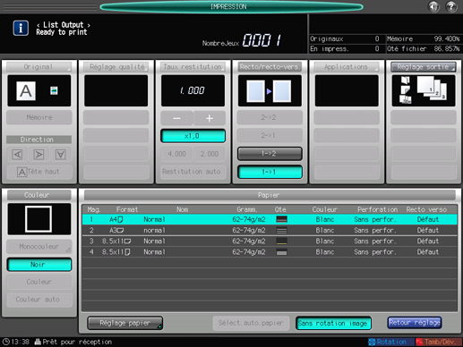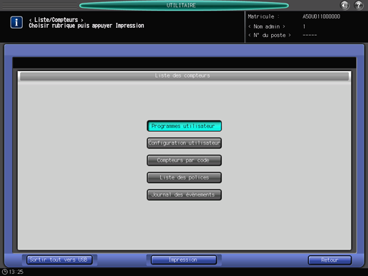 Lorsque l'impression est terminée, appuyez sur [Retour réglage] pour revenir à l'écran [Liste des compteurs].
