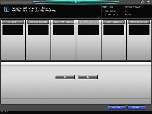 Changez l'ordre des éléments de réglage affichés dans la partie supérieure de l'écran COPIER.