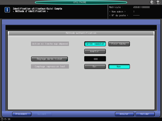 Appuyez sur [Réglage durée ticket] et entrez la période de temps.