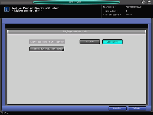 Appuyez sur [Valider] pour revenir à l'écran [Réglage administratif].