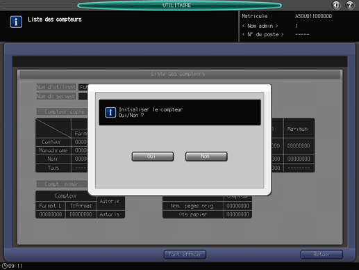 Appuyez sur [Oui] ou sur [Non]. Appuyez sur [Tout effacer] pour effacer tous les compteurs.