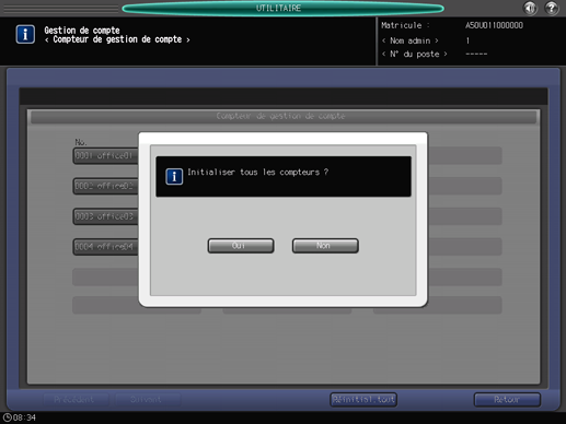 Appuyez sur [Retour] pour revenir à l'écran [Compteur de gestion de compte].