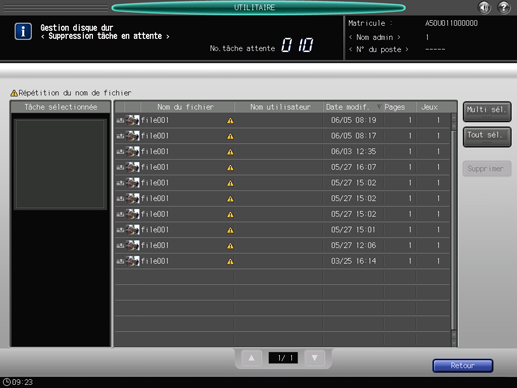 L'écran [Suppression tâche DD] s'affiche.