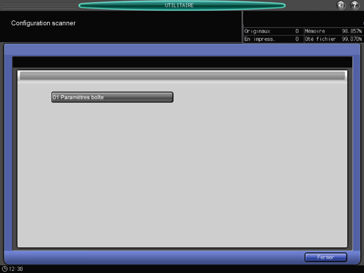 Appuyez sur [Configuration scanner], puis sur [Paramètres boîte].