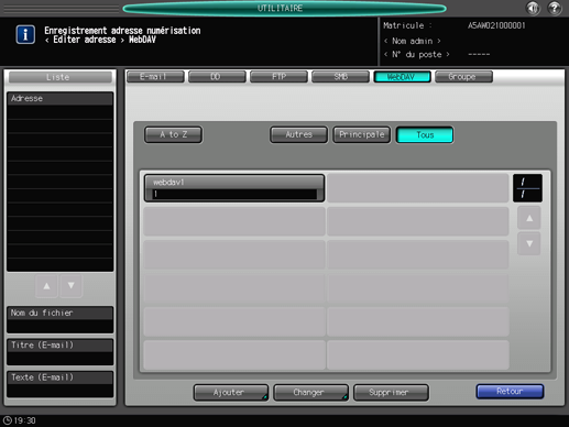Enregistrez un serveur WebDAV. L'envoi de données de numérisation à un serveur FTP est facilité par l'enregistrement du serveur WebDAV comme destination.