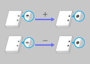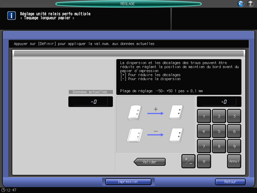 Plage de réglage : -50 ([Pour réduire la dispersion]) à +50 ([Pour réduire les décalages]) (1 pas = 0,1 mm)