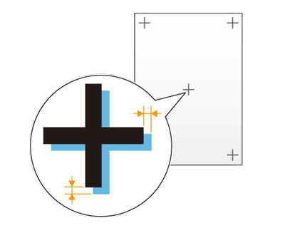 Si après avoir exécuté plusieurs fois le [Calage recto-verso], la position d'impression du [Recto] et celle du [Verso] ne sont toujours pas alignées, vous devez réajuster la position d'impression de référence. Pour en savoir plus sur ce réglage, voir Réglage machine.