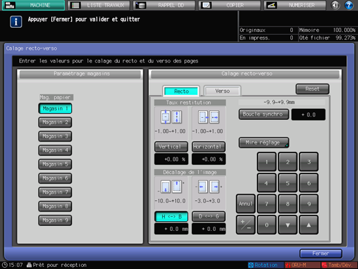 Pour spécifier la face à régler, appuyez sur [Recto] ou [Verso].