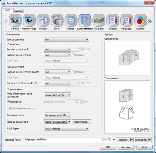 [Thermorelieur] | [Mode d'impression de la couverture] | [Couverture vierge] |