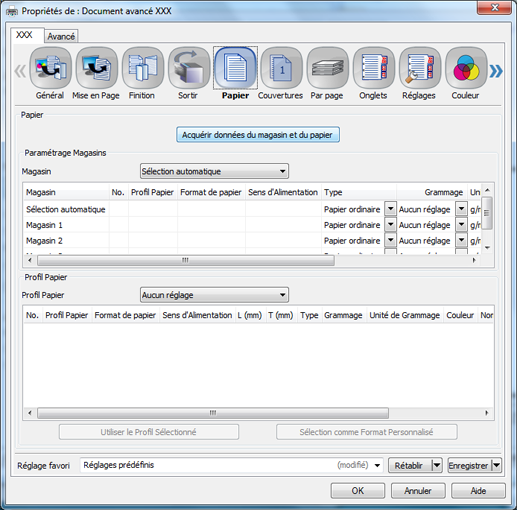 Cliquez sur l'onglet [Papier], puis sur [Acquérir données du magasin et du papier].