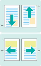 Alignement du recto et du verso (utiliser la charte de test) ![]() | Les positions d'impression du recto et du verso sont-elles identiques ? -> Décalage avant, arrière, gauche ou droit : réglage du décalage d'image | |