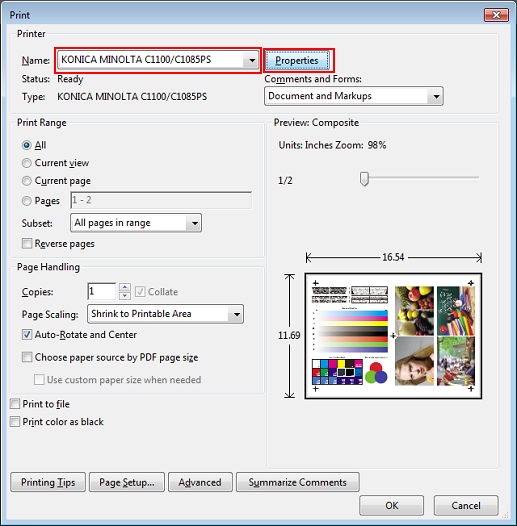 Sélectionnez l'imprimante à utiliser pour l'impression et cliquez sur [Propriétés].