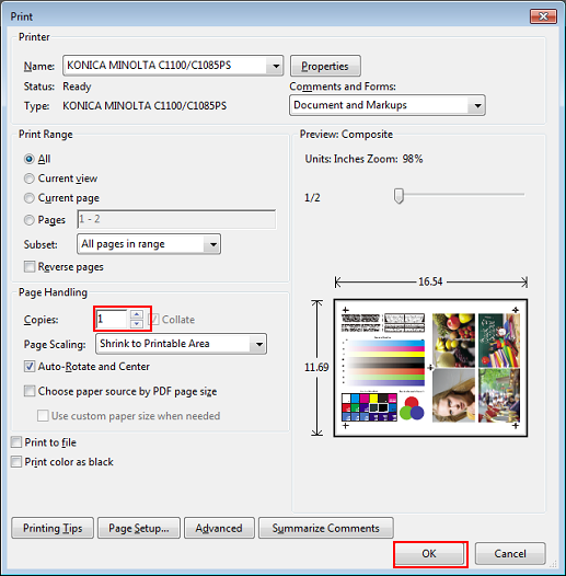 Sur l'écran [Imprimer], entrez les [Copies] et cliquez sur [OK].