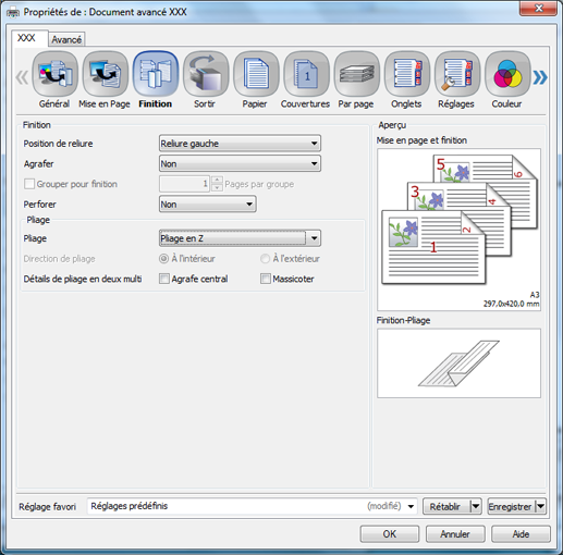 Cliquez sur l'onglet [Finition] et définissez [Pliage].