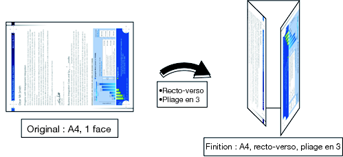 installez l'unité de pliage FD-503 et effectuez la finition du document PDF avec la fonction Pliage en trois.