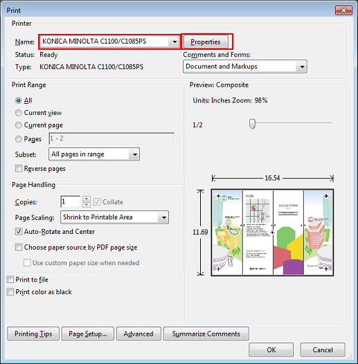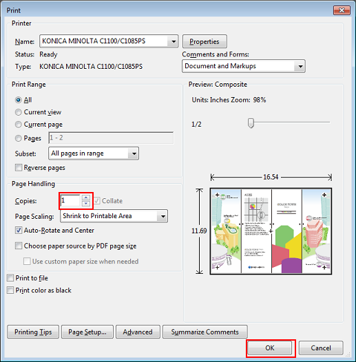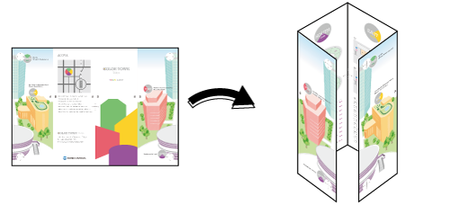 installez l'unité de pliage FD-503 et effectuez la finition du document PDF avec la fonction Encart à volet.