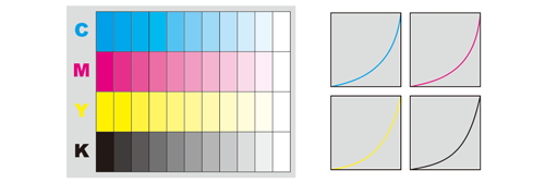 Pour assurer la stabilité des couleurs reproduites, procédez aux autres réglages de qualité image nécessaires, comme exemple en cas de changement de trame ou de papier ou si la teinte est un facteur important. Pour en savoir plus, voir Réglage de la qualité image avant impression.