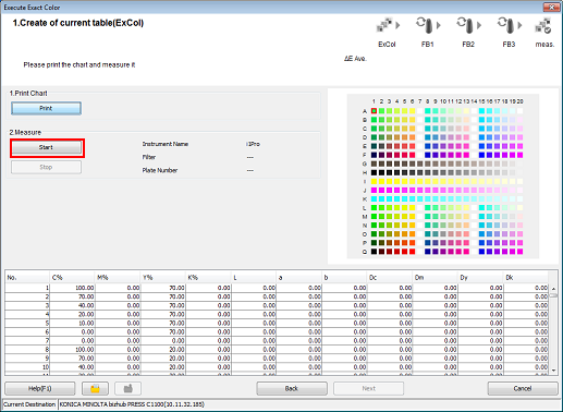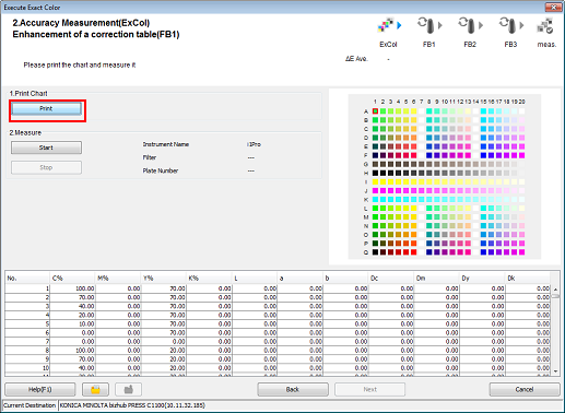 L'assistant vous permet de créer un tableau de correction avec la fonction Exact Color et d'appliquer le tableau de correction dans le contrôleur comme retour d'information pur améliorer la précision de reproduction des couleurs.