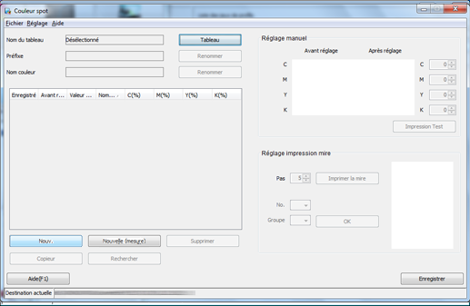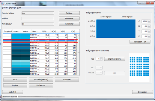 L'écran [Gestion Tableau de couleurs Spot] s'affiche.