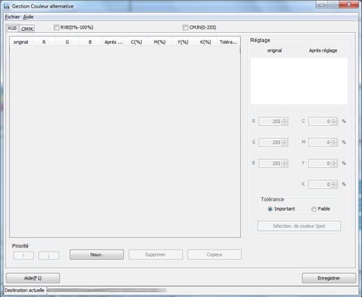 L'écran [Gestion Couleur alternative] s'affiche.