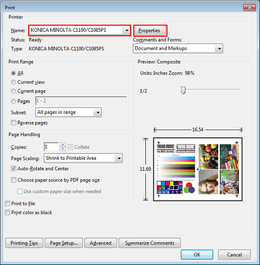 Sélectionnez l'imprimante à utiliser pour l'impression et cliquez sur [Propriétés].