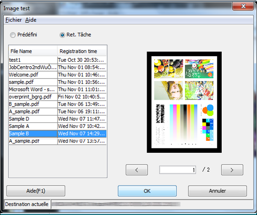 Lors que vous sélectionnez [Ret. Tâche], la liste des tâches enregistrées temporairement sur le disque dur s'affiche.