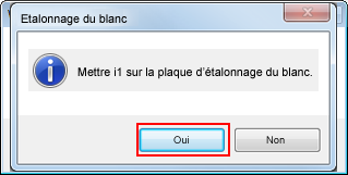 Lorsque le message suivant s'affiche, placez l'instrument à plat sur le dock d'étalonnage et cliquez sur [Oui].