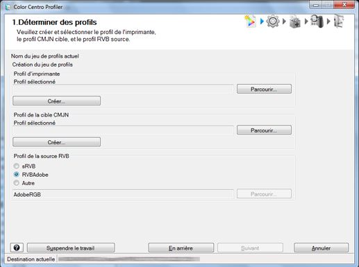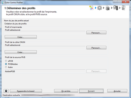 Sélectionnez un profil source RVB. Cliquez sur [Suivant].
