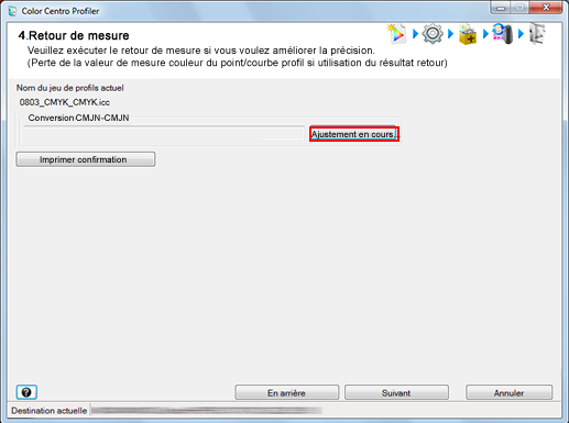 Le retour de mesure est utilisée pour améliorer la précision des profils de lien périphériques CMJN-CMJN.
