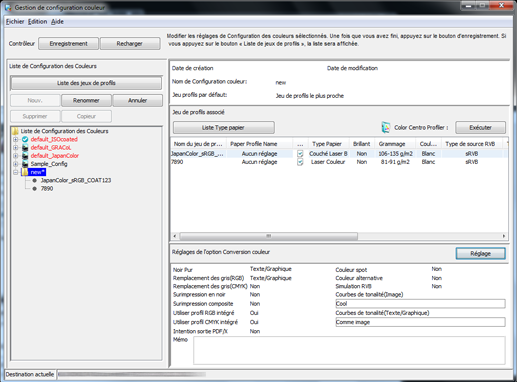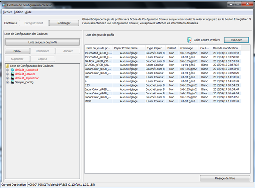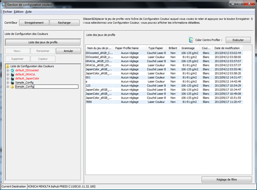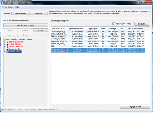 Vous pouvez créer une configuration couleur avec Color Centro et enregistrer les jeux de profils existants pour activer la configuration couleur.