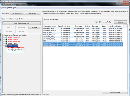 •Les deux jeux de profils précités sont enregistrés dans une configuration couleur créée sous le nom "Config_échantillon"