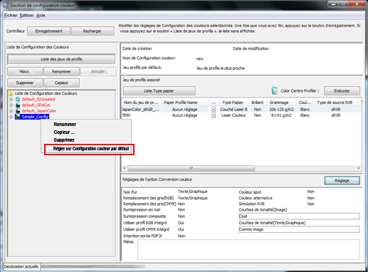 Faites un clic droit sur la configuration couleur que vous souhaitez définir comme configuration par défaut et sélectionnez [Régler sur Configuration couleur par défaut].