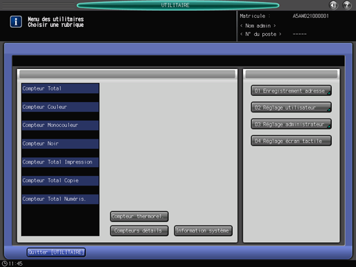 Appuyez sur Utilitaire/Compteur sur le panneau de contrôle de la machine.