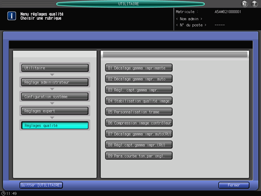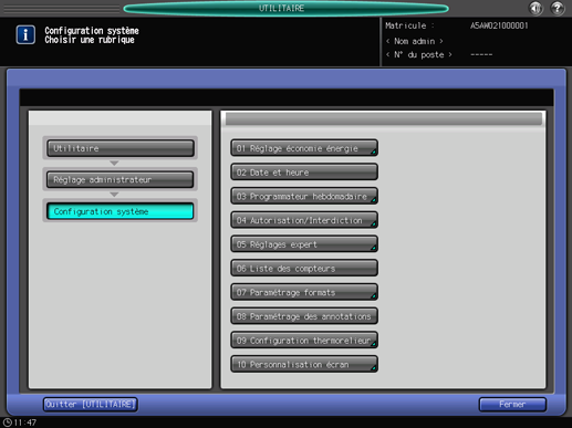 A l'aide de l'écran tactile de la machine, attribuez des trames dans le menu [Réglage administrateur].