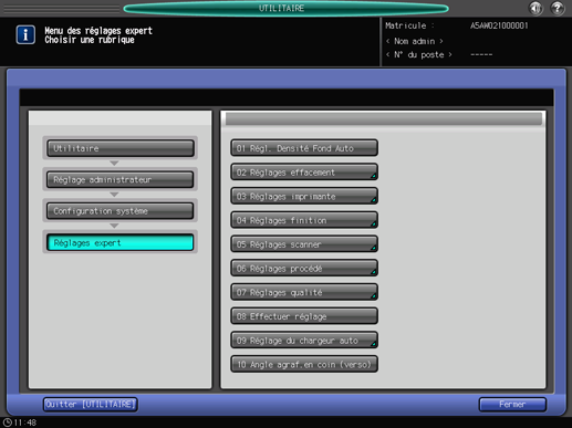 Appuyez sur [Réglage administrateur].