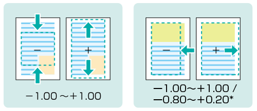 *: Facteur d'agrandissement compris entre -1,00 et +1,00 au recto et entre -0,80 et +0,20 au verso.