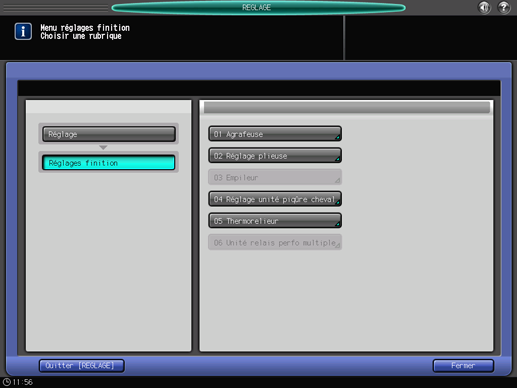 Appuyez sur [Réglages finition] sur l'écran [Menu réglages].
