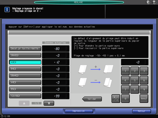 Appuyez sur le format papier à régler. Entrez la valeur de réglage et appuyez sur [Valider].