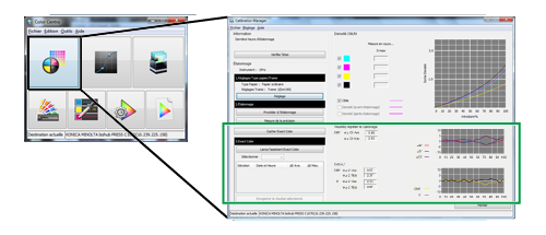 L'étalonnage régulier du contrôleur (voir Qualité image : exécution de l'étalonnage du contrôleur) règle la densité de sortie des couleurs C, M, J, et N, tandis que l'étalonnage avancé du contrôleur utilise les couleurs primaires (C, M, J et N) en tant que courbe unidimensionelle et ajuste l'équilibre des gris pour obtenir une reproduction plus fidèle des couleurs. Pour en savoir plus, voir Types d'étalonnage.