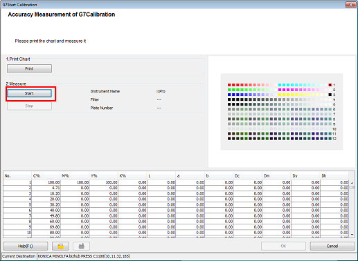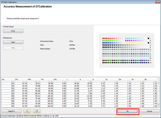 Mesurez la charte avec l'instrument. Une fois la mesure de la charte terminée, cliquez sur [OK].