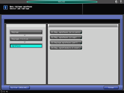 Appuyez sur [Agrafeuse] dans le menu [Réglages finition].
