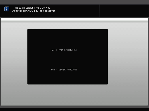 Le travail de copie/impression peut se poursuivre sans utiliser le magasin défaillant (ici Magasin 2) de la machine.