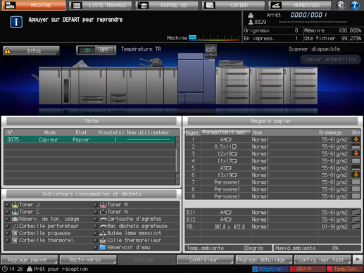 L'écran [MACHINE] réapparaît et affiche le message [Appuyez sur DEPART pour reprendre].
